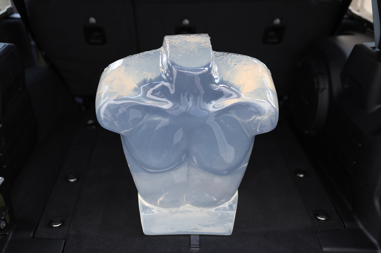 The Clear Ballistics Gel Block is made from a 100% synthetic, clear, and reusable gelatin substitute. It is odorless and designed to replicate the density and resistance of human tissue for ballistic testing.